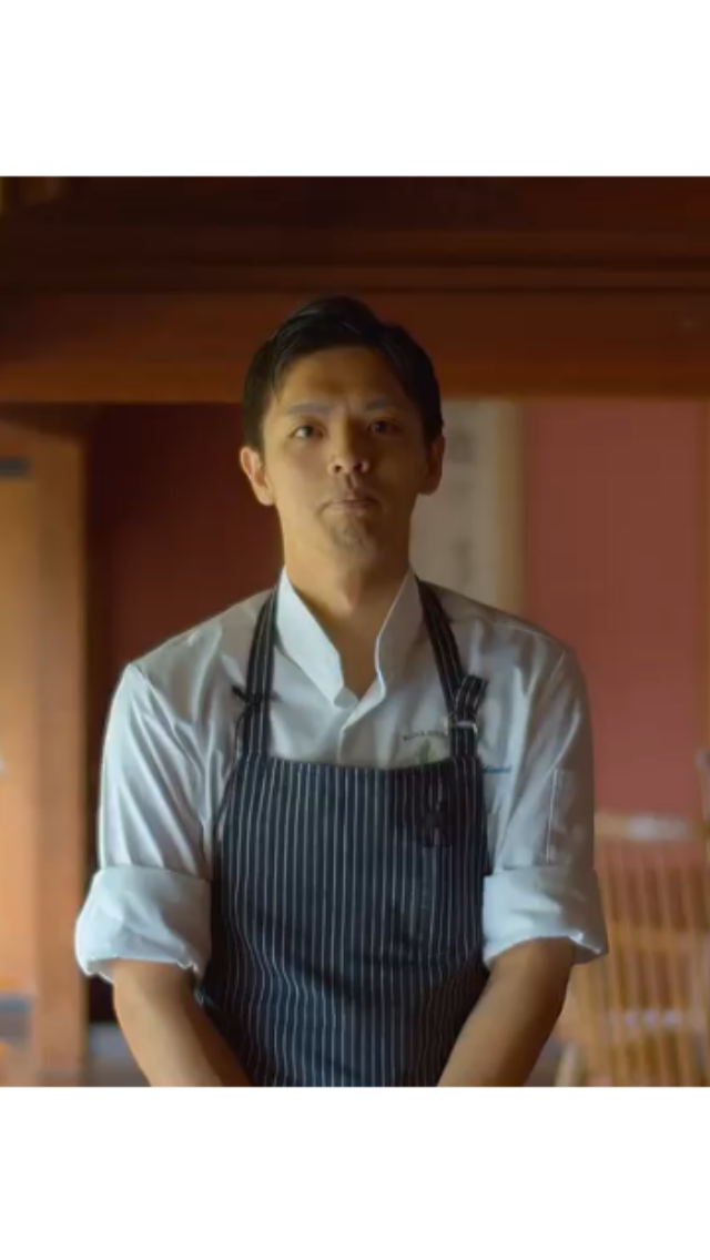 ヒラマサをジャガイモで巻いて揚げることにより、外はカリカリで、中はしっとりと仕上がっています。ソースはシャンパーニュソースにウニを加えて、ハンドミキサーで泡立てました。ウニの香りを楽しめると思います。